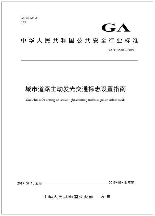 答:主動發光標志目前涉及到的專業標準主要有:國家標準《LED主動發光道路交通標志》(GB/T31446-2015)、行業標準《內部照明標志》(JT/T750-2009)、行業標準《城市道路主動發光交通標志設置指南》(GA/T 1548—2019 )、團體標準《面板顯示主動發光交通標志》(T/CSIA 001-2018)。另行業標準《太陽能道路交通標志》(GA/T580-2005)已廢除。