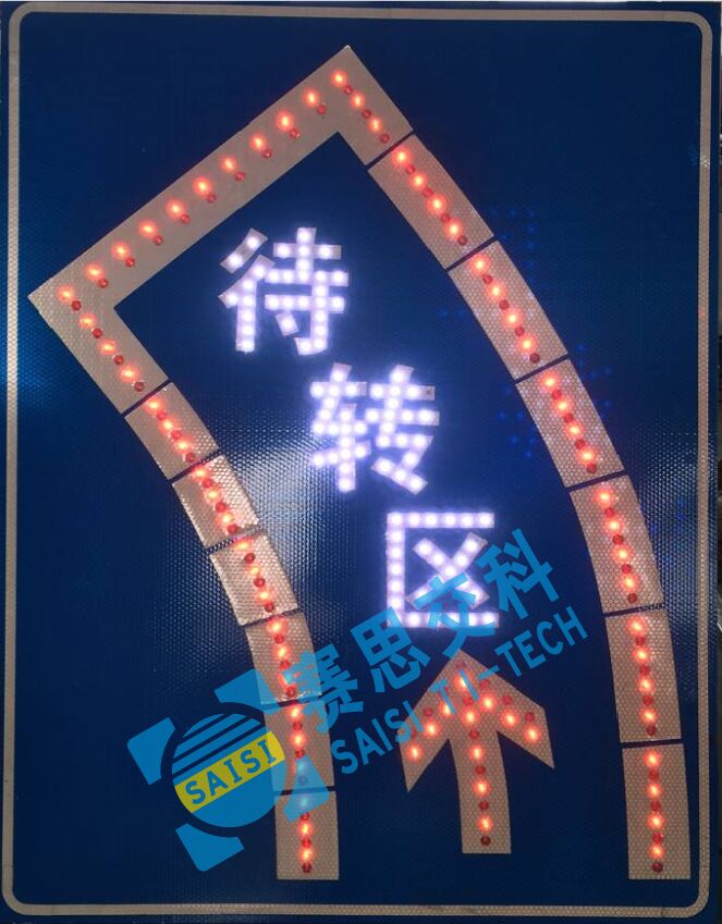 為了提高交叉口整體的通行能力,設(shè)計師們常常會采用設(shè)置左轉(zhuǎn)等待區(qū)的處理方式,左轉(zhuǎn)車輛可以在直行綠燈時,提前駛?cè)胱筠D(zhuǎn)等待區(qū),為了形象地引導左轉(zhuǎn)車輛,南京賽思交通信息科技有限公司作為專業(yè)的智能發(fā)光標志生產(chǎn)單位,特研發(fā)出本款文字加箭頭型待轉(zhuǎn)區(qū)動態(tài)引導發(fā)光標志。具體技術(shù)參數(shù)如下: