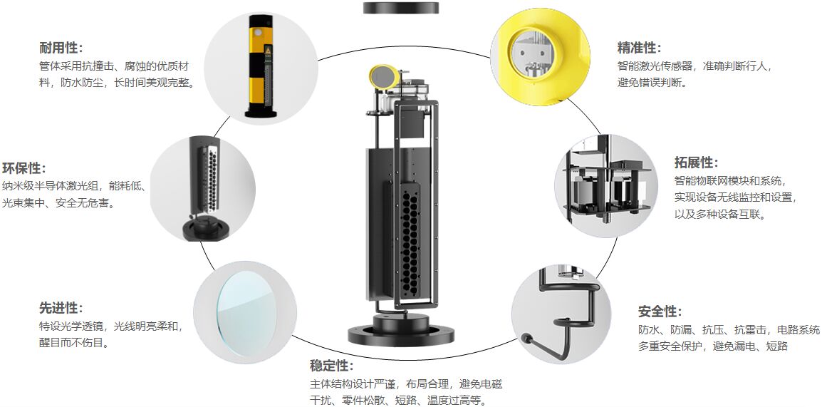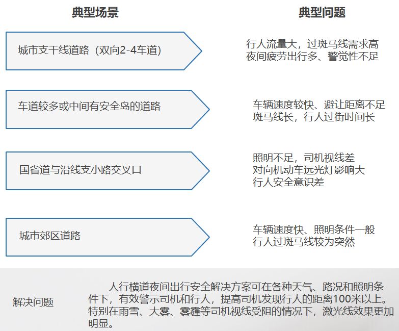 - 消除照明不足路口的安全隱患 ,解決惡劣天氣能見度較低時車輛識別行人的難點