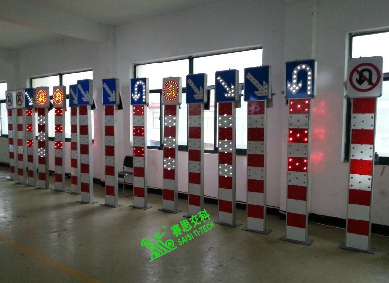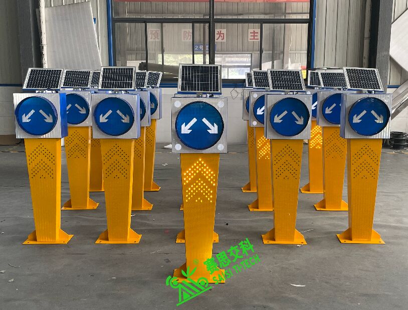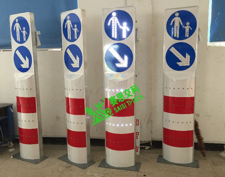 (二)高實用性。太陽能道口閃光警示柱,其通體為主動閃爍發光的LED燈珠,有效增益設備在夜間、惡略天氣中的識別率,既增強了警示效果,又提高了交通語言信息的遠距離視認性。其上部標志可以為:右下行、注意行人(兒童)、機動車與非機動車的路權指引、黃閃警示燈、禁止掉頭等標志圖案,款式多樣,能滿足多種危險場景需求。