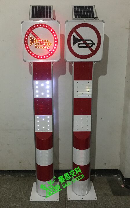 太陽能道口閃光警示柱,采用LED大廣角罩燈分布于柱體正面,根據不同的指示功能需要,在上方設置對應的標志牌,并在圖案輪廓上外嵌LED高亮燈珠,實現夜間、惡劣天氣中的全天候識別效果,整體發光工作能耗不需要接入外部電源,通過自身攜帶的太陽能板來實現電能供應的“自給自足”。從實用主義的角度來看,其主要有以下幾個優點: