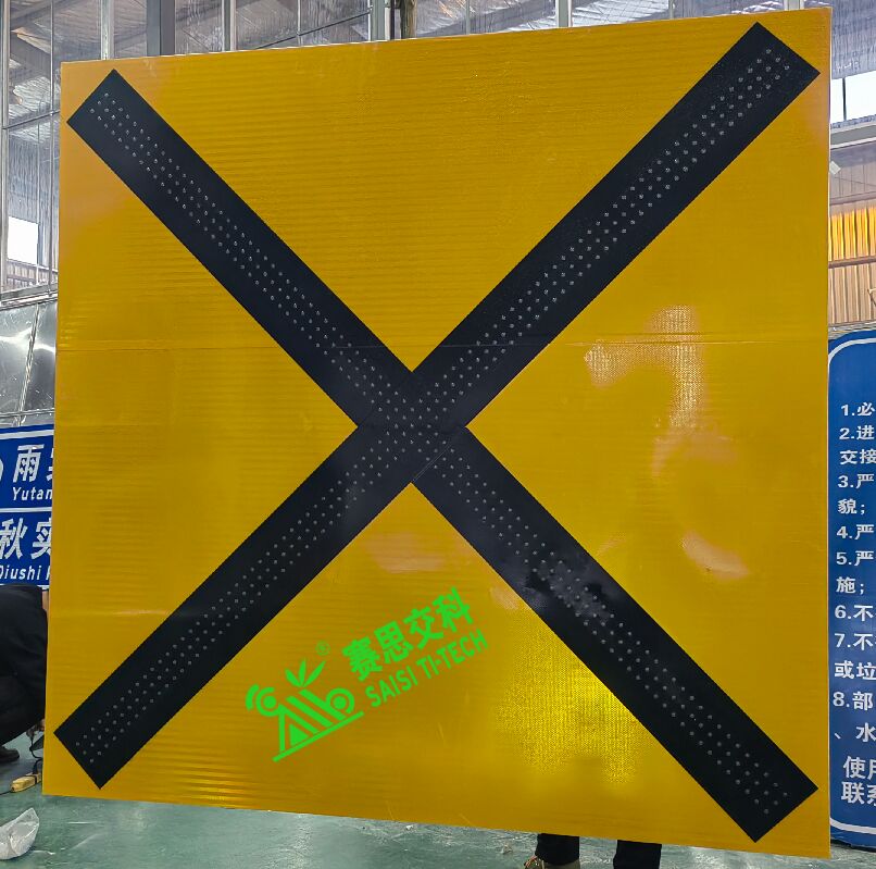 為提升禁航標志的遠距離視認性和警示性,通常都采用LED發光工藝,根據LED布點需要,通過數碼打控工藝,將標志版面均勻開孔,外嵌LED發光燈串,要求其燈色為黃色定光,通過設置必要的電阻、電容,來調節標志的亮度及均光性,夜間“×”型圖案顯示為黃色,以實現標志的主動發光特性。