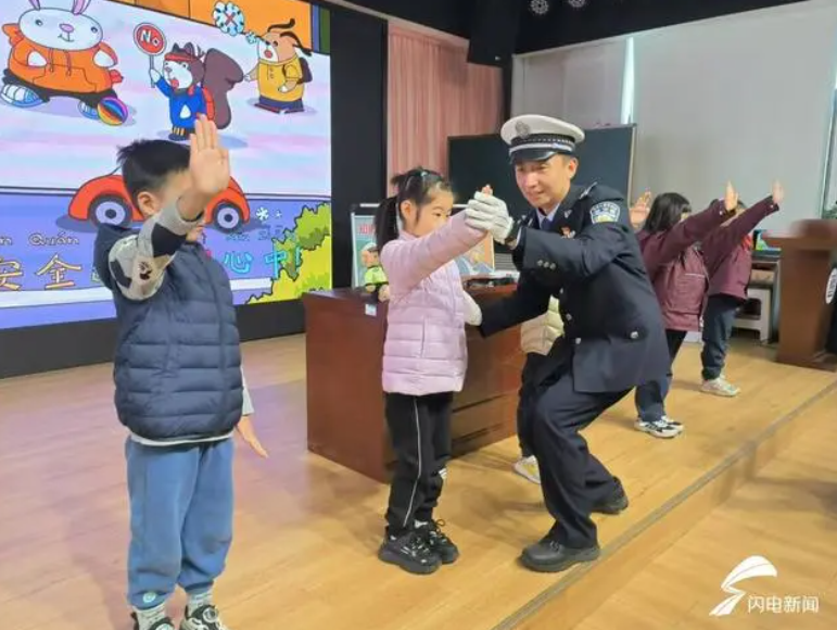 “生動(dòng)活潑,入腦入心”。民警通過ppt為同學(xué)們介紹了各種常見的交通標(biāo)志、標(biāo)線,例如“一盔一帶”,“安全帶是生命帶”、“細(xì)觀察,不猛跑”等。同時(shí),民警還開展了有獎(jiǎng)互動(dòng),為答對(duì)問題的小朋友送上交通安全文創(chuàng)產(chǎn)品。