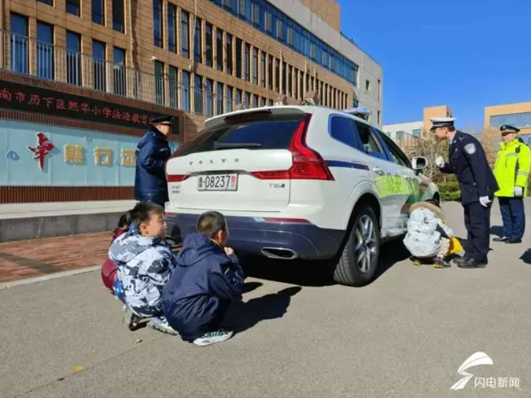 “知危險(xiǎn),會(huì)避險(xiǎn)”,民警專門設(shè)計(jì)的車輛盲區(qū)體驗(yàn)課。在車輛停止的情況下,讓一組小朋友躲在車輛盲區(qū),讓另一組小朋友在駕駛室觀察,“識(shí)別盲區(qū),保證安全”,讓師生共同體驗(yàn)車輛盲區(qū)位置,避免危險(xiǎn)的發(fā)生,保證交通安全。通過交通安全宣傳進(jìn)校園活動(dòng),為在校師生上了一堂生動(dòng)活潑的交通安全課,充分展示了濟(jì)青交警的良好形象。