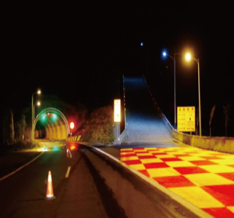 4、在隧道入口通道鋪裝長100-200米彩色防滑材料,以增大車輪滾動阻力系數,縮短剎車距離;并且彩色鋪裝明顯產生分隔車道的效果;同時,彩色防滑路面材料可強化可視距離和醒目度,美化道路環境,顏色鮮艷持久 。
