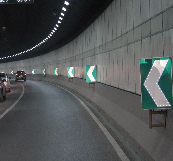因此,在有條件的情況下,隧道及進出路段所有交通標志均宜采用Ⅴ類大廣角反光膜,或者采用主動發光型交通標志,以提升交通標志的遠距離、大角度、全天候視認功能,并通過科學、合理地增設基礎交通安全設施,消除特殊交通環境所衍生的安全隱患,提高隧道內行車安全、秩序和通行效率,降低交通事故發生率,保證整個運輸系統的健康運行。