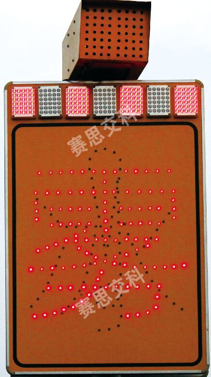 該款標(biāo)志可將三款不同的道路險(xiǎn)情提示信息,合并在一個(gè)標(biāo)志版面種,并通過(guò)遠(yuǎn)程SIM卡無(wú)線控制,達(dá)到提前預(yù)警的功能,特別適用于多種交通險(xiǎn)情混雜的路段進(jìn)行警告提示。